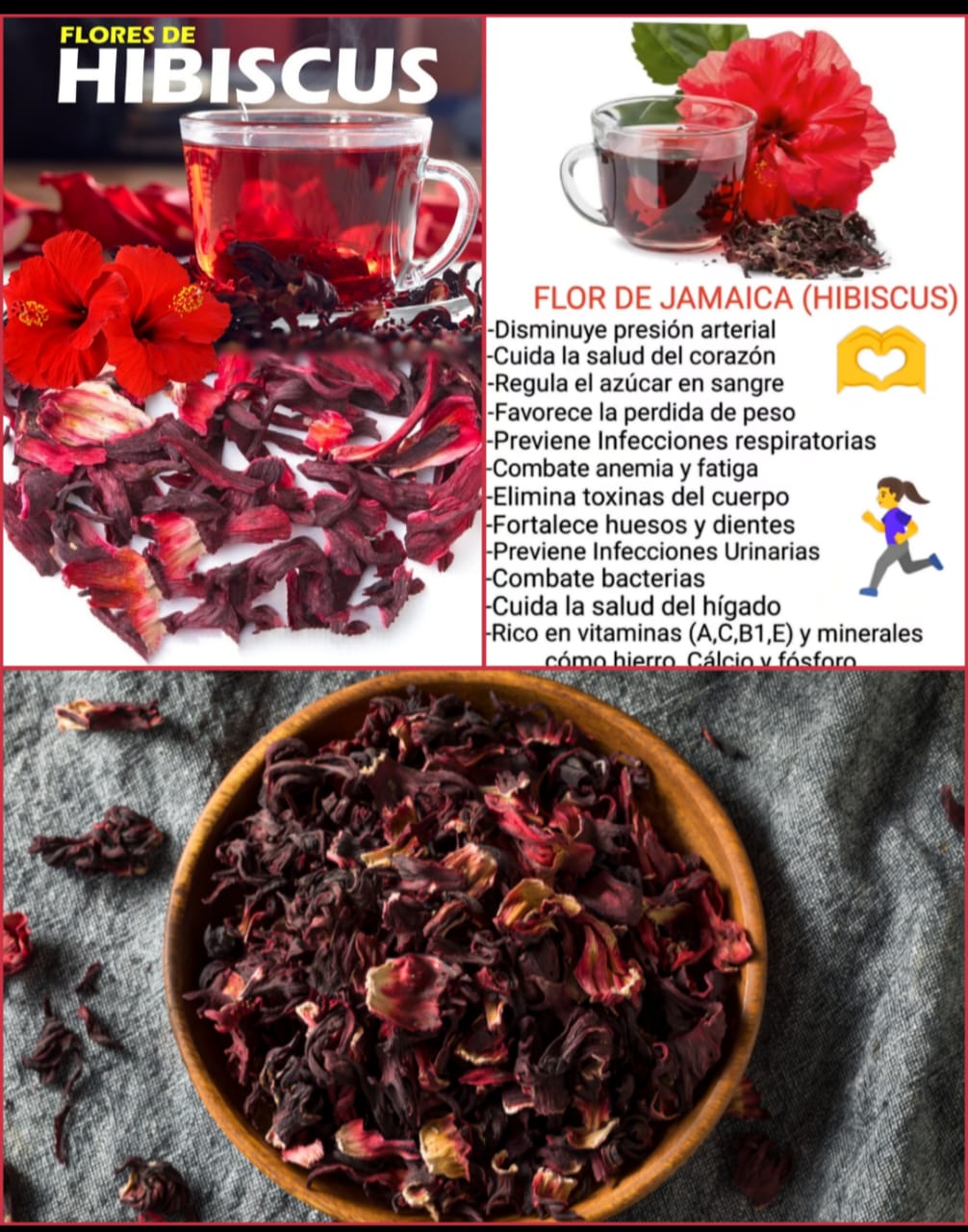 La flor de Jamaica es una planta medicinal que tiene muchos beneficios para la salud, entre ellos: - Ayuda a controlar la presión arterial, prevenir enfermedades cardíacas y regular el azúcar en la sangre, gracias a sus propiedades antioxidantes, diuréticas y antihipertensivas. - Favorece la pérdida de peso, al estimular el metabolismo, reducir la absorción de grasas y aumentar la sensación de saciedad. - Combate el estrés, el nerviosismo y el insomnio, al actuar como un sedante natural y relajar el sistema nervioso². - Previene y trata el cáncer gástrico, al inhibir el crecimiento de las células cancerosas y proteger la mucosa del estómago. - Evita la formación de cálculos renales, al facilitar la eliminación de toxinas y evitar la acumulación de ácido úrico². - Tiene propiedades antiparasitarias, al impedir el desarrollo de algunos parásitos intestinales. - Mejora la digestión, al estimular la producción de bilis y aliviar el estreñimiento. - Fortalece el sistema inmunológico, al aportar vitamina C y otros nutrientes esenciales. La flor de Jamaica se puede consumir en forma de té, agua, cápsulas o platos culinarios. Para preparar el té, se debe hervir una cucharada de flores secas en un litro de agua durante 10 minutos, colar y endulzar al gusto. Se recomienda tomar de 2 a 3 tazas al día.